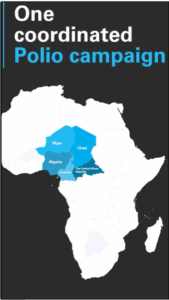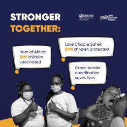 From the Horn of Africa to the Sahel, coordinated vaccination drives are helping stop polio at borders and keep communities safe. Together, we’re building a polio-free future. [WHO AFRO graphic]